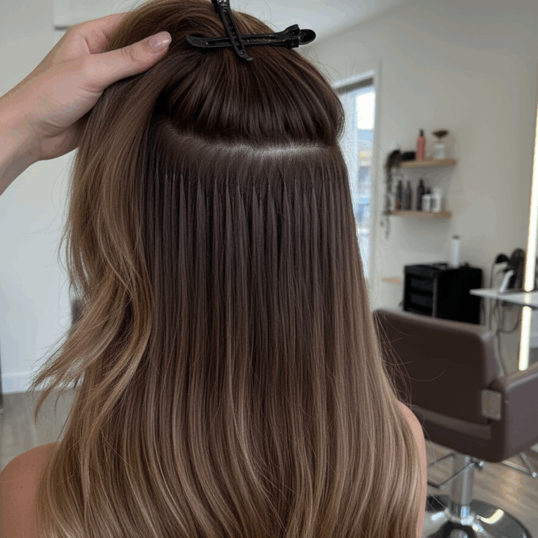 Tape-in extensions use thin adhesive tapes to attach hair strands, but we choose not to offer this method. Our priority is the health of your natural hair, so we focus on safer, premium techniques that deliver both flawless beauty and lasting care.